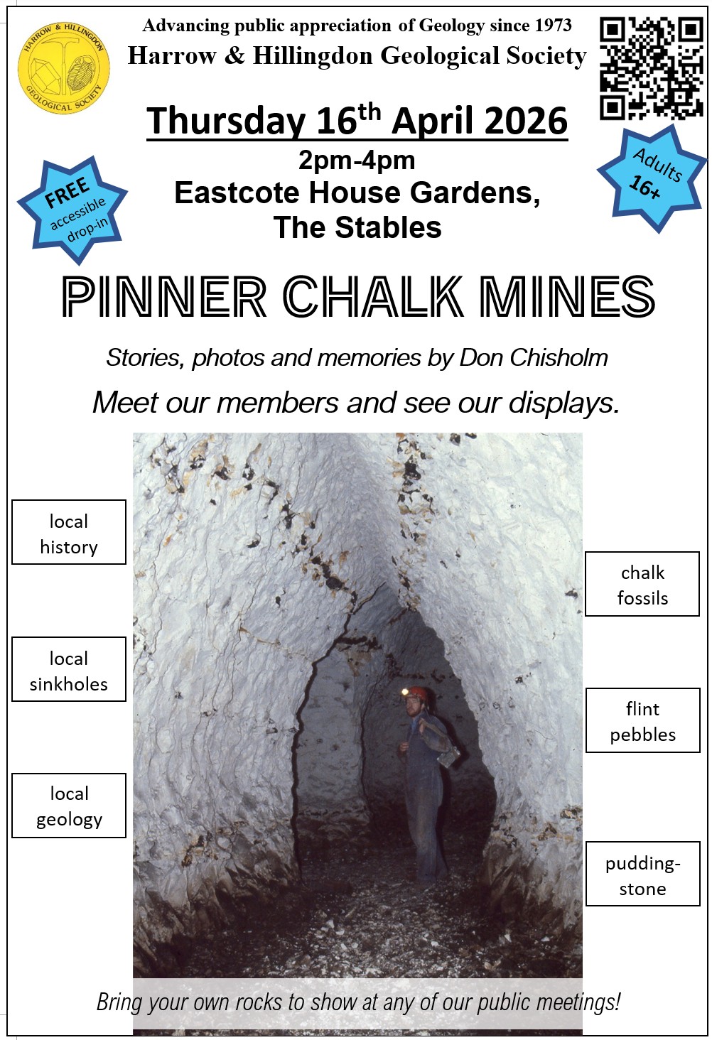 Harrow & Hillingdon Geological Society are holding a free public drop-in event about Pinner Chalk Mines and local Chalk at Eatscote House Gardens