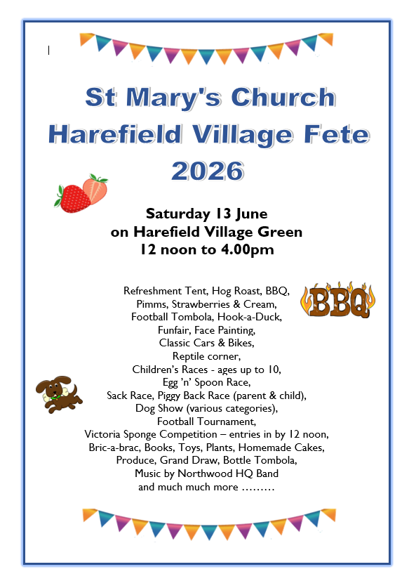 The village will be closed to traffic and we will host a selection of local artisan stalls, food court area, funfair, Brass Band, Punch & Judy, Morris Dancing and homemade Teas and cakes in our historic Church and Memorial Hall.